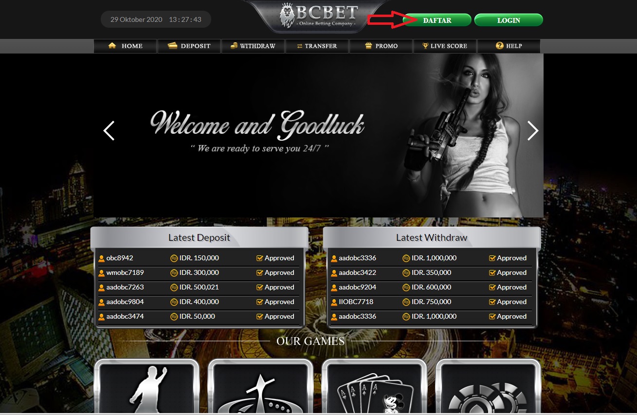 1. Di website OBCBET.com, Anda dapat menemukan menu DAFTAR di menu atau panel login . 2. Klik menu tersebut, maka akan muncul popup yang berisi form pendaftaran . 3. Lengkapi semua di form pendaftaran, data yang diisi harus valid . 4. Username yang Anda masukan akan digunakan untuk proses login. Anda diharap untuk mengingat username dan password anda
